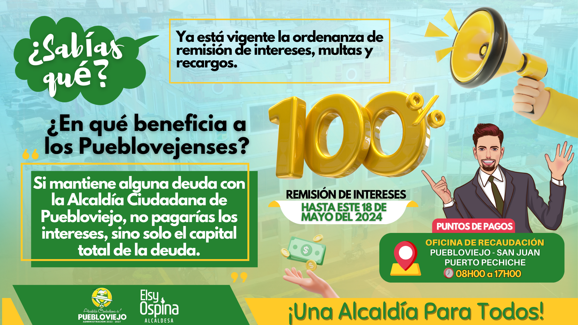 CIUDADANOS DEL CANTÓN PUEBLOVIEJO PODRÁN BENEFICIARSE CON LA EXONERACIÓN DEL 100% DE INTERESES, MULTAS Y RECARGOS DE IMPUESTOS